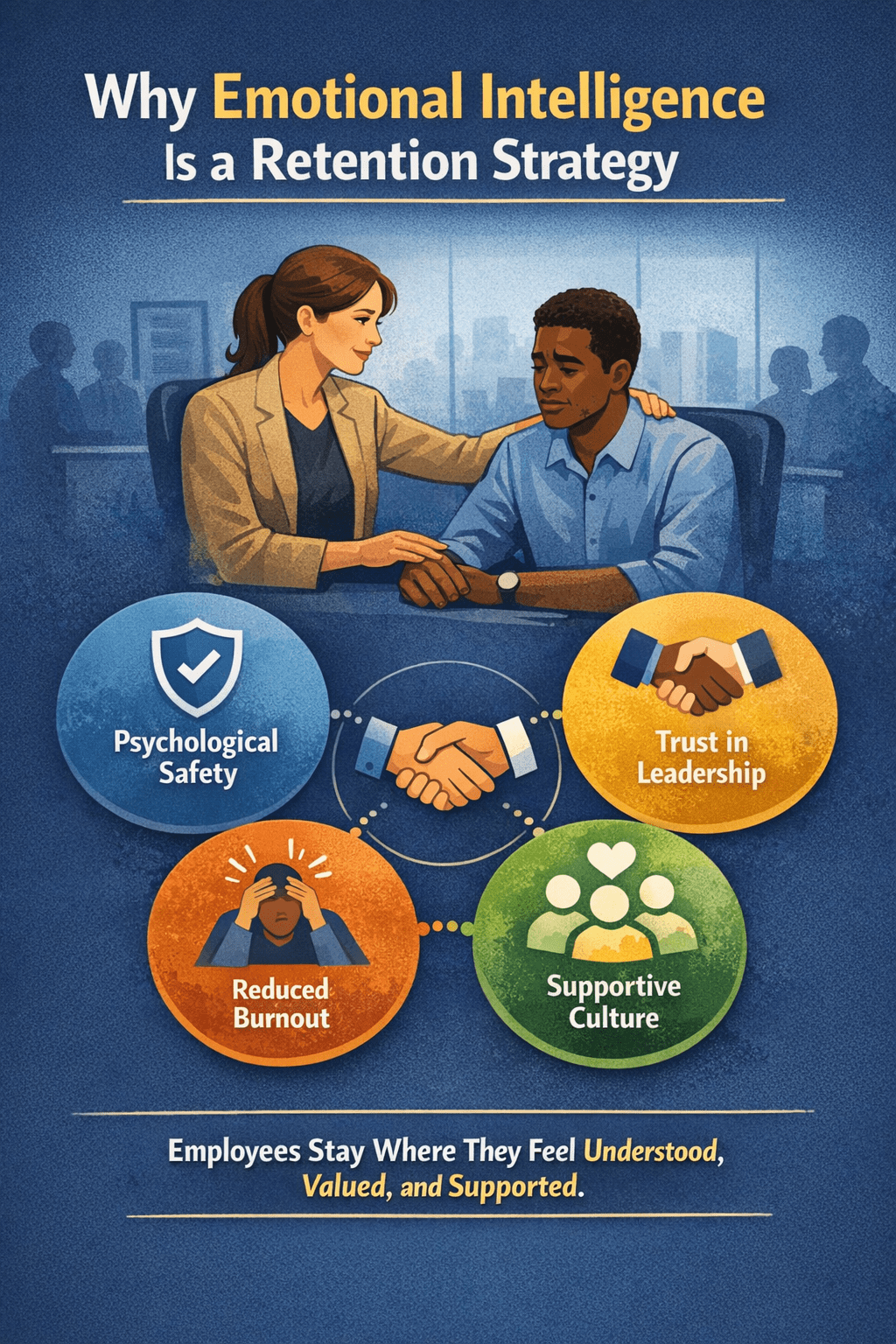 Compensation may draw new talent into an organization. Emotional intelligence retains that talent. Organizations that invest time in developing their manager’s emotional intelligence, primarily at the manager level, are not investing in softness. Organizations are investing in sustained engagement, trust, and stability.